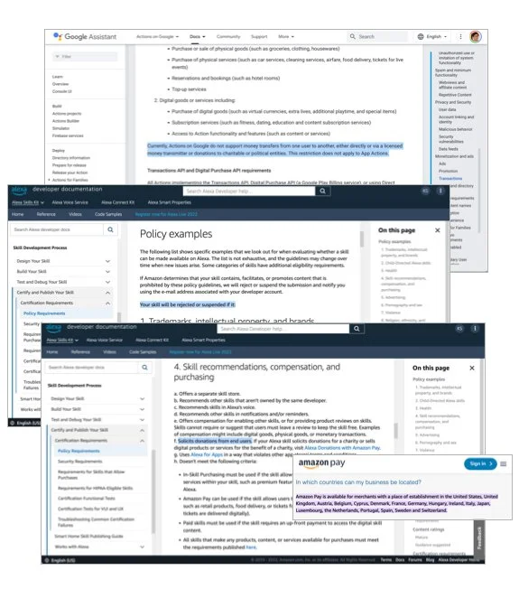 It was initially hoped that users would be able to make donations via the voice app. However, when I looked into the details of a potential donation mechanism it became clear that this wouldn’t be possible due to platform policies regarding donations.