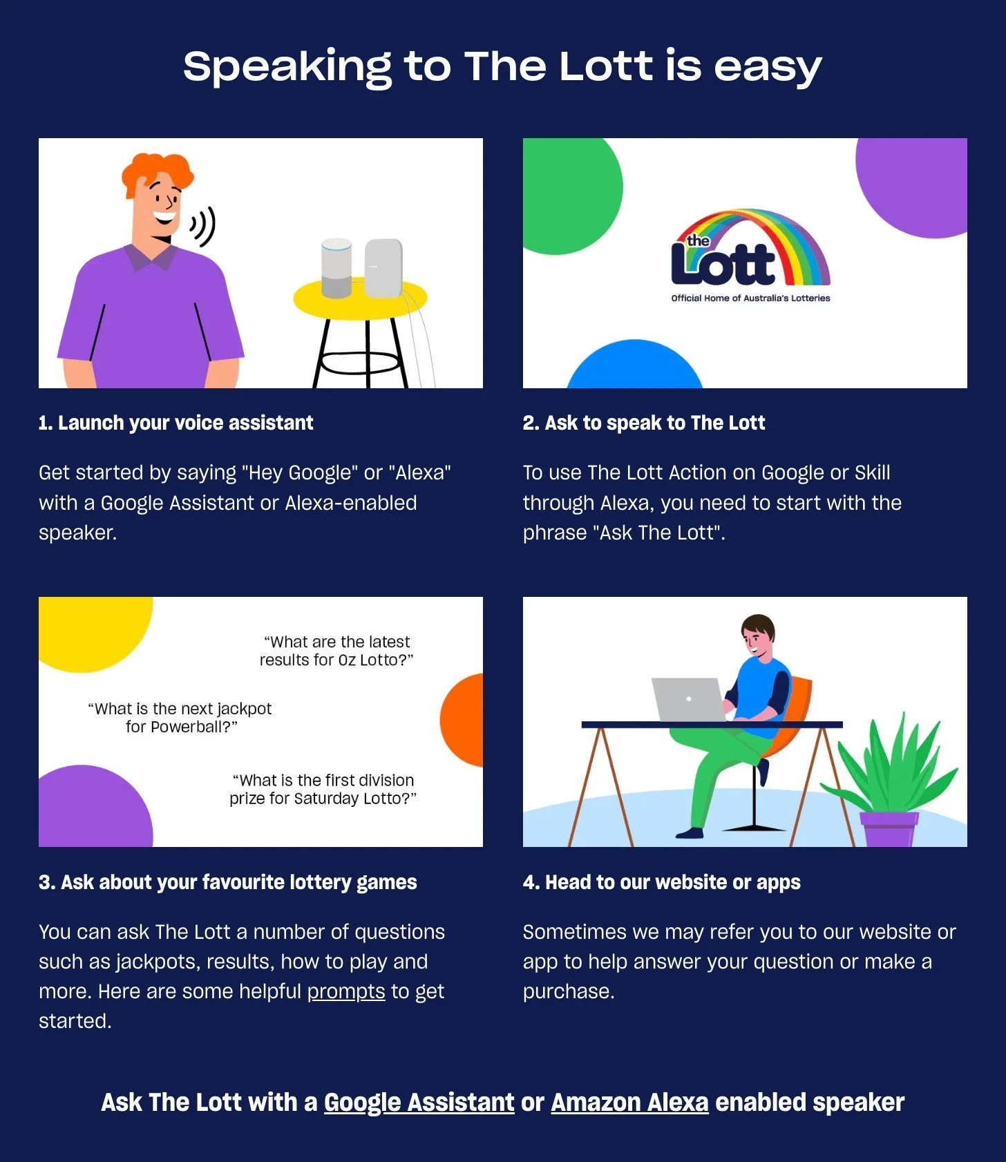 Having just launched their first fully functional Android app, the Digital team at The Lott (now “The Lottery Corporation”) was keen to innovate by launching voice apps for Amazon Alexa and Google Assistant.